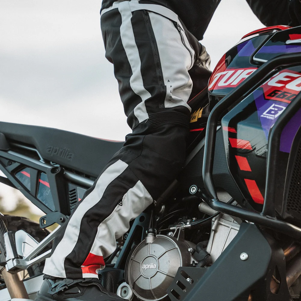 Konstrukcija i materijal: Glavni materijal je Polystrong 600D tkanina sa Drop Safe vodootpornim tretmanom, koja nudi visoku otpornost na habanje. Umetci od ultra-otporne Xtr-M mrežice i rastegljive Profiber tkanine obezbeđuju prozračnost i fleksibilnost, posebno na kolenima i unutrašnjim delovima nogu.