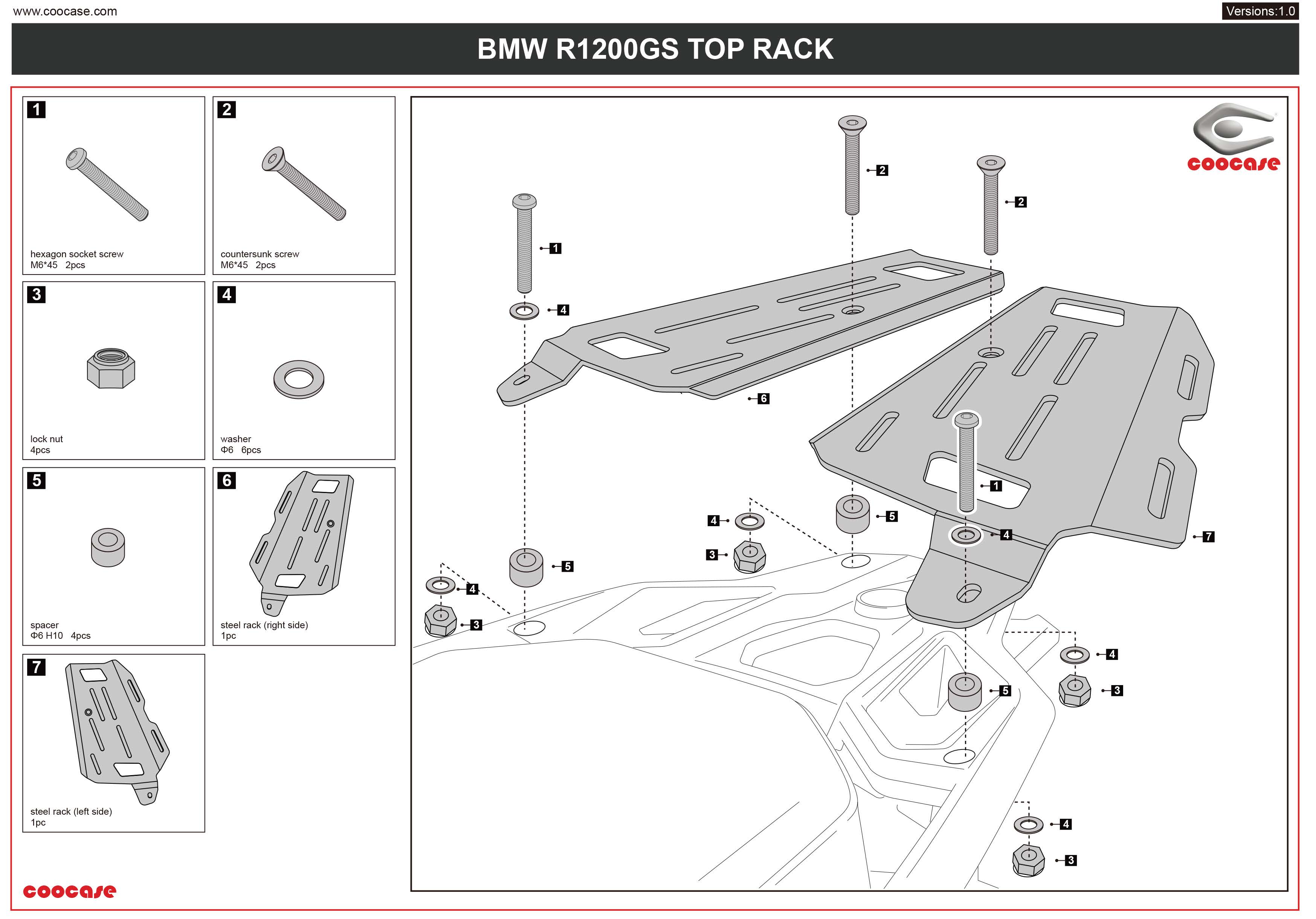Coocase BMW R1200GS/R1250GS NOSAČ GORNJEG KOFERA 2010-2023