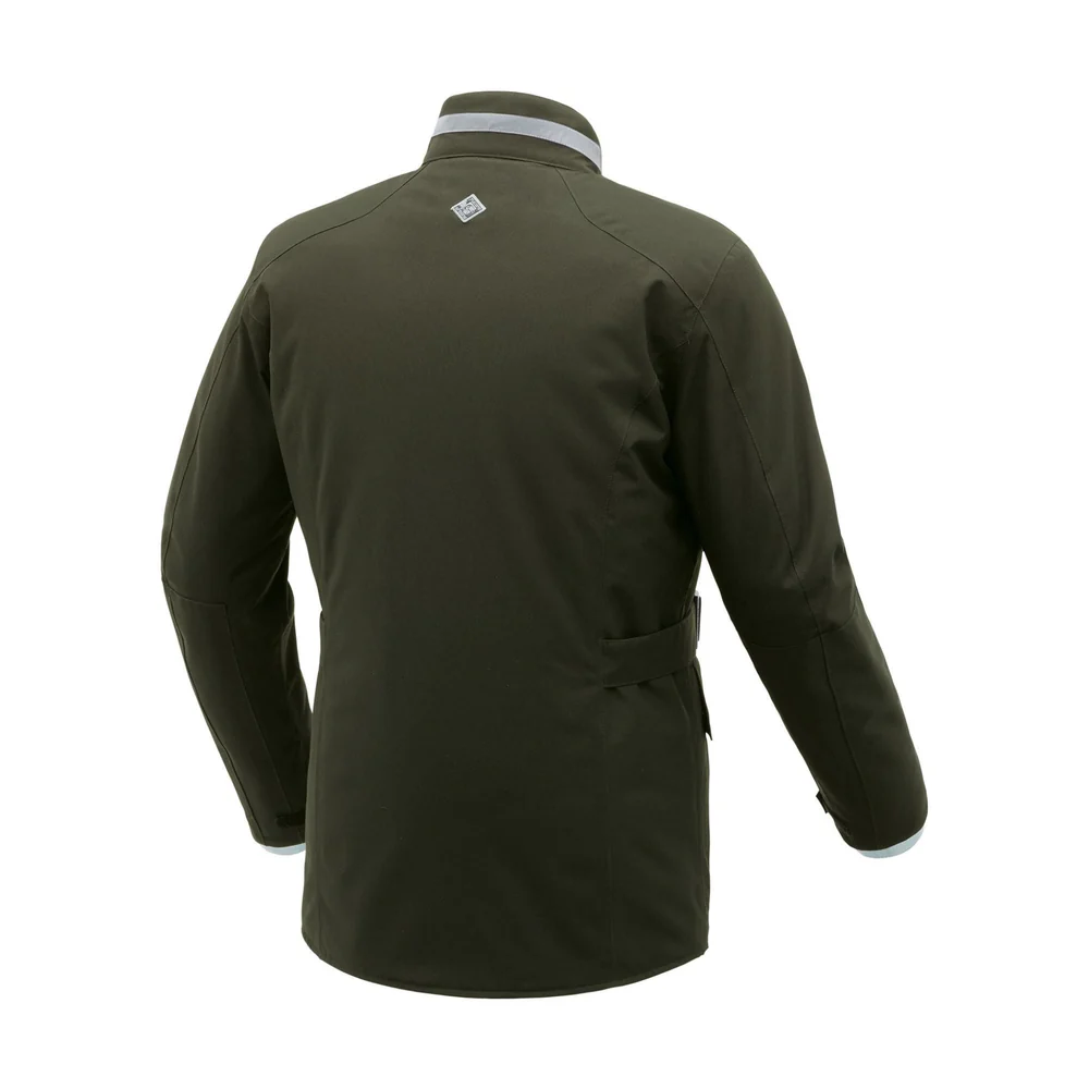ORBIS HYDROSCUD® AIRBORNE GREEN je srednje duga, postavljena, laminirana motociklistička jakna sa CE sertifikatom klase A, koju proizvodi italijanski brend Tucano Urbano.